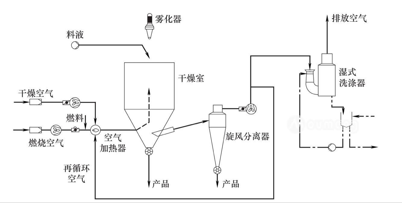 所謂噴霧干燥機(jī)開(kāi)式循環(huán)流程,就是采用的干燥介質(zhì)是空氣,干燥完成以后,廢氣排放到大氣中。